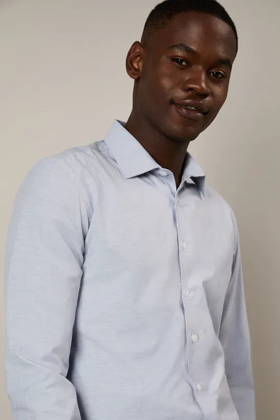 Blue Textured Stretch Slim Fit Long Sleeve Shirt